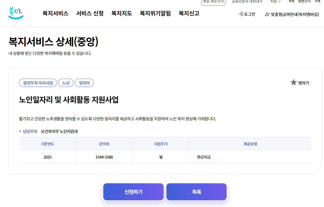 - 노인 일자리 + 연금·복지 정보 동시 확인