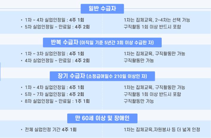 - 정해진 횟수의 구직활동 필수