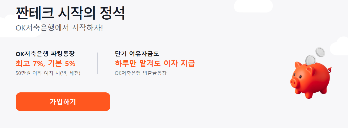 - OK저축은행 OK짠테크통장Ⅱ: 최고 연 7.0%(우대 충족 시), 구간별 차등