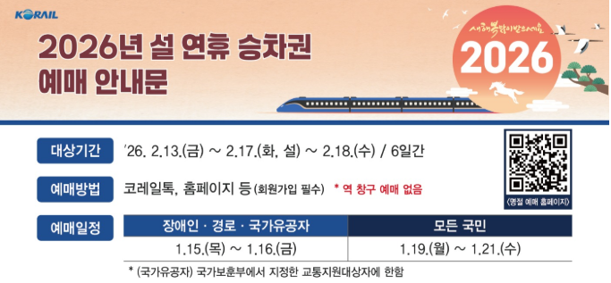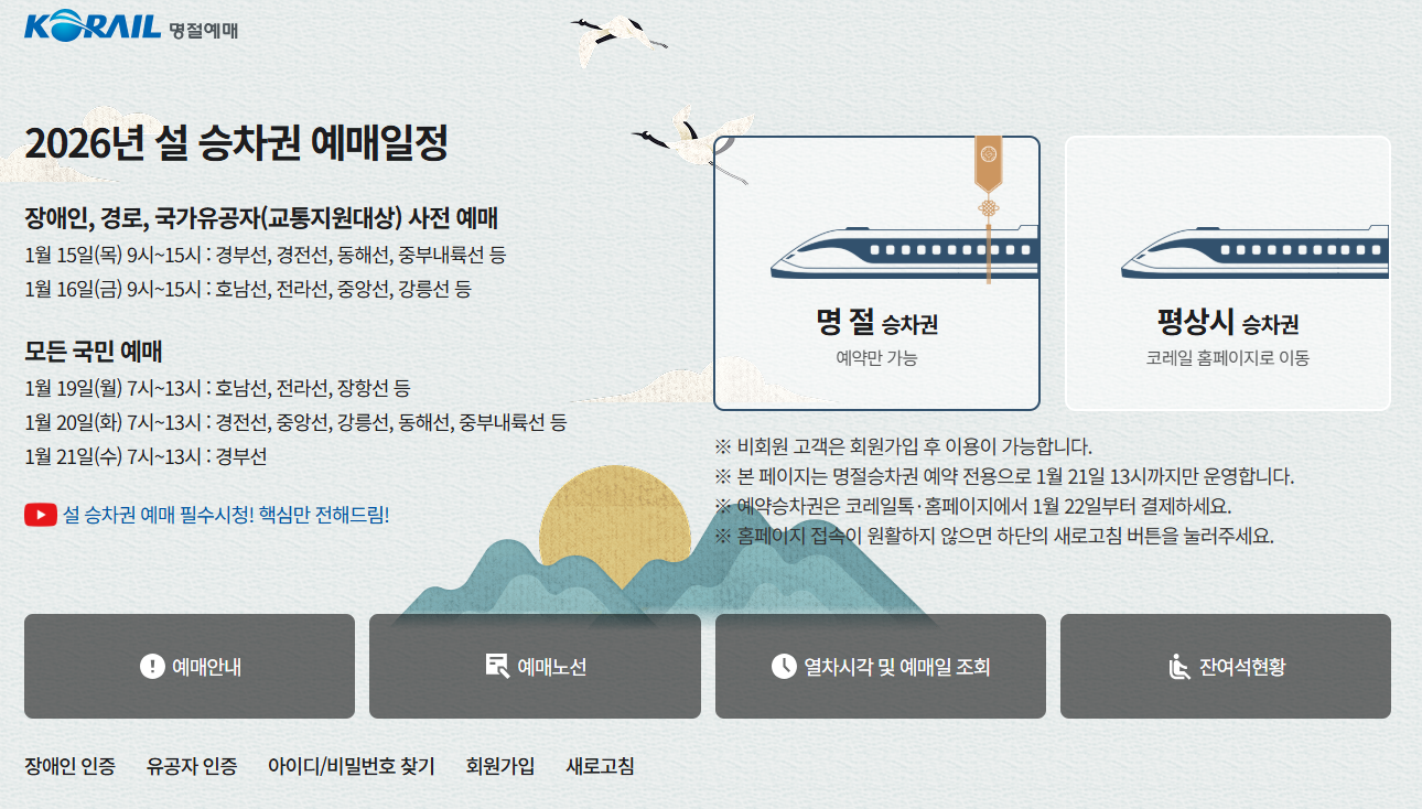 2) 코레일(KTX) 2026 설 승차권 예매 일정