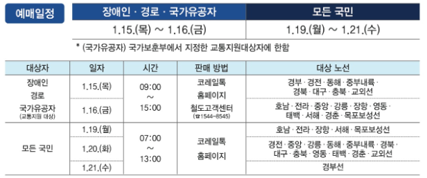 코레일은 교통약자 우선 예매 → 일반 예매 순서로 진행됩니다.