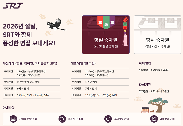 2026년 설 연휴는 주말이 이어져 이동 수요가 크게 몰릴 가능성이 있습니다. 그래서 예매 당일 “접속만 하면 되겠지” 했다가, 노선별 예매일·결제 마감·잔여석 풀리는 시간에서 실수하는 경우가 꽤 많아요.
